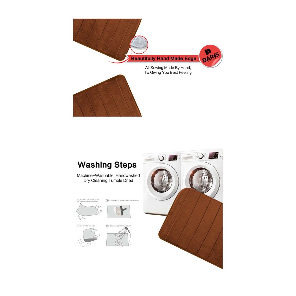 Quality:Good Appearance:Good Suitability:Good Very cushy and nice to step on after a shower. Bounce back into shape very fast. Colour suits my vinyl flooring too!