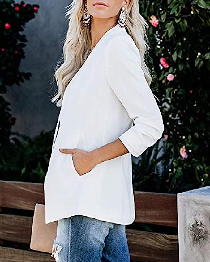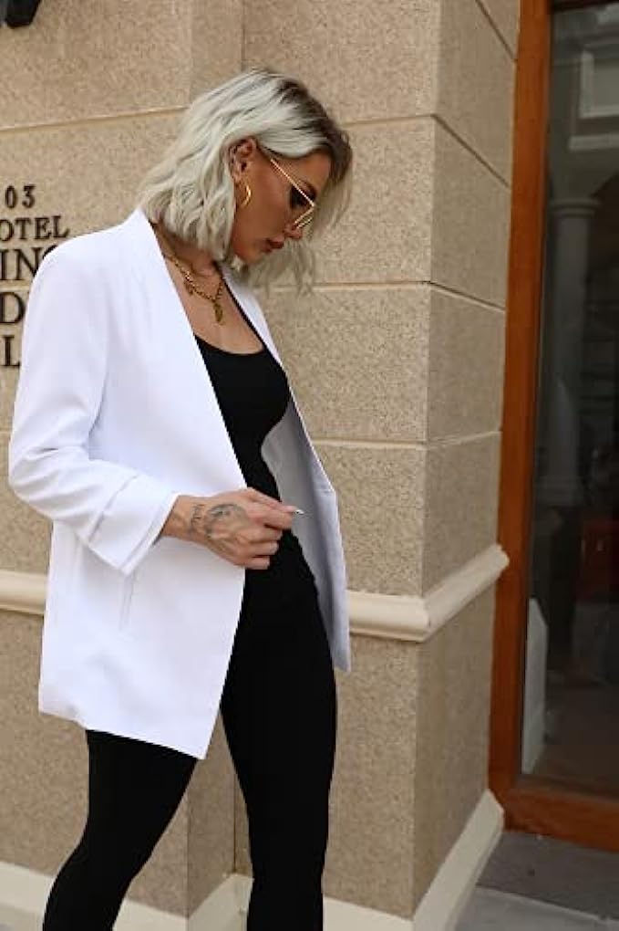 Features: Womens Casual Blazers Open Front Long Sleeve Work Office Jackets Blazer, Lapel Collar, Two Pockets, Loose Fit, Solid Color Basic Business Jackets Coat.
