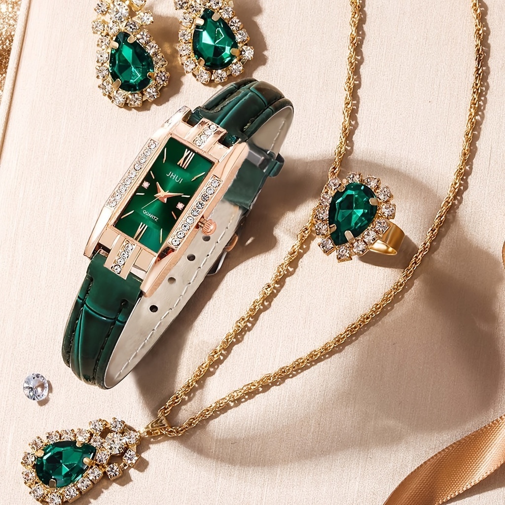 Kegllect Women Watch Set Rhinestone Quartz Watches Ladies Square Dial Jewelry Set Gift for Mom Her